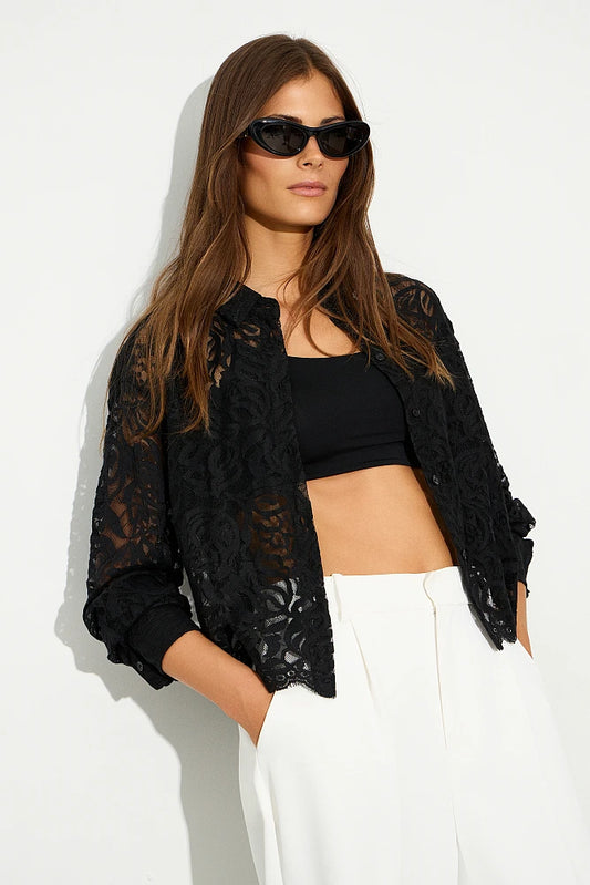 Chemise semi-transparente avec dentelle - BSB Fashion